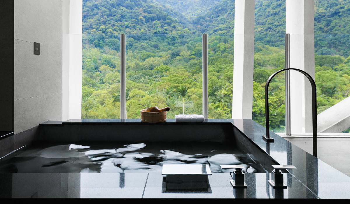在宜蘭這個藝術城市裡,我們以一種網狀外飾格柵結構脫穎而出的建築風格,搭配清水建築工法,與大片的溫泉森林自然氛圍的露天風呂,並規劃溫泉式兒童遊區空間,營造出別樹一格的溫泉酒店,並在房間設置了半露天大理石溫泉浴缸,體驗在房間沒有干擾的露天溫泉感受。溫泉會館的基地位於宜蘭礁溪,宜蘭時常細雨綿綿,線性的雨絲是人與街道間未明的介質,重新詮釋也碎化了街道的樣貌;雨中礁溪的溫泉更合併了朦朧的霧氣,湯池裡人與人之間於是有了一種模糊的質感。
