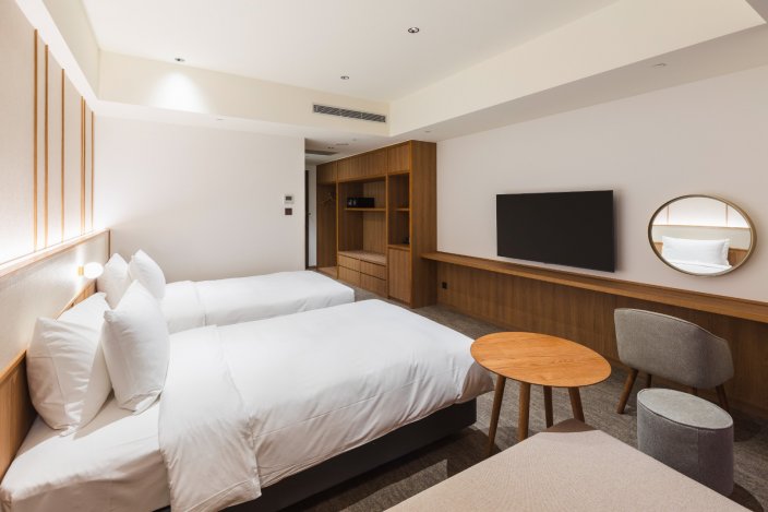 所有客房面積均超過 30 坪米,並配備美國頂級寢具公司 Serta 生產的床。精緻的客房為您提供輕鬆舒適的住宿體驗。